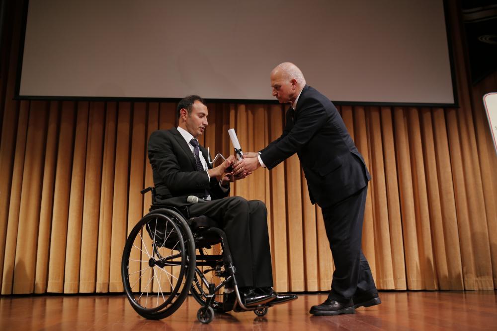 Down Sendromlular Dünya Judo Şampiyonası'nda altın madalya kazanan Talha Ahmet ve Down sendromlu Avrupa şampiyonu atlet Ali Topaloğlu ile basın mensuplarına açıklamada bulunan Türkiye Özel Sporcular Spor Federasyonu Asbaşkanı Efkan Korkmaz ise "Bu ödülü özel sporcularımıza verdiği için Boğaziçi Üniversitesine teşekkür ediyorum. Bu çocuklarımızın topluma kazandırılması çok önemli bir görev. Tüm yetkililere teşekkür ediyorum. Sporcularımızla gurur duyuyoruz’’ dedi.
