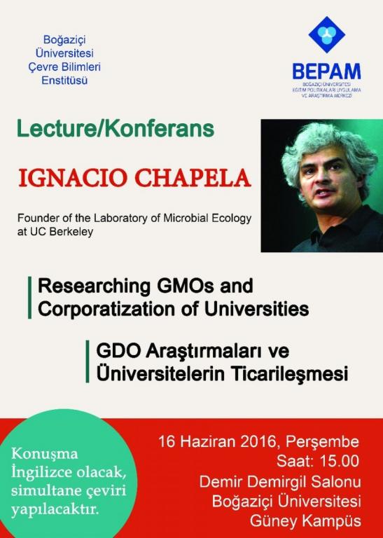 Tüm dünyada GDO karşıtı çalışmalarıyla tanınan Prof. Ignacio Chapela 16 Haziran’da Boğaziçi’nde