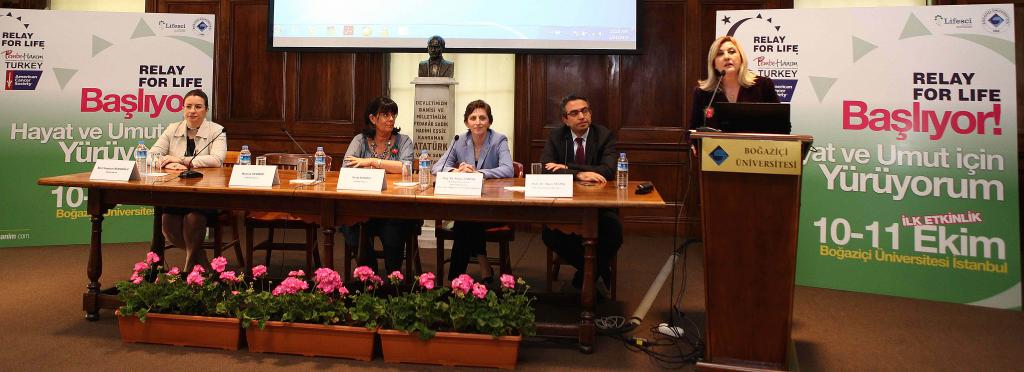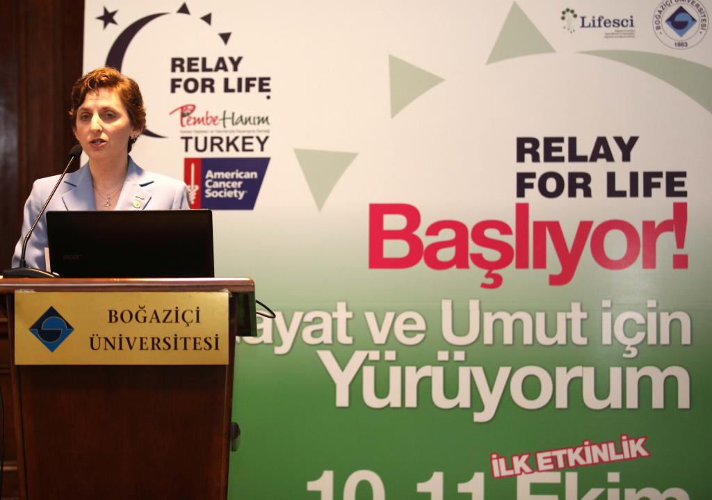 Relay for Life etkinliğinin duyurulması amacı ile 21 Mayıs Perşembe günü Boğaziçi Üniversitesi Rektörlük Konferans Salonu’nda, Boğaziçi Üniversitesi Öğretim Üyesi ve Yaşam Bilimleri ve Teknolojileri Uygulama ve Araştırma Merkezi Müdürü Doç. Dr. Rana Sanyal ev sahipliğinde, Pembe Hanım Kanser Hastaları ve Yakınlarıyla Dayanışma Derneği Yönetim Kurulu Başkanı ve Relay For Life Komite Başkanı Nevval Sevindi, Pembe Hanım Kanser Hastaları ve Yakınlarıyla Dayanışma Derneği Genel Sekreteri ve Relay For Life Proje Direktörü Seda Kansu ve Türk Tıbbi Onkoloji Derneği’nden Prof. Dr. Alper Sevinç’in katılımlarıyla bir basın toplantısı gerçekleşti.