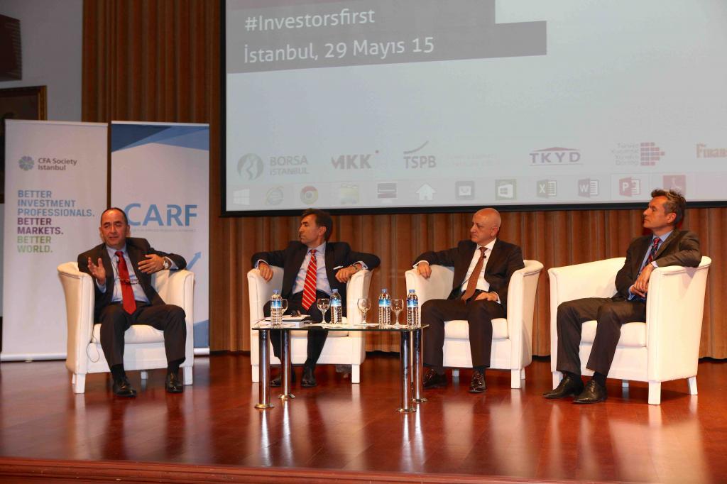 Önce Yatırımcı! Konferansı, CFA, CFA Institute YK Üyesi Attila Köksal moderatörlüğündeki ‘’Yatırımcı’nın Korunması - Yatırım Danışmanlığı’’ başlıklı panelin ardından sona erdi. Panelin konuşmacıları arasında Yrd. Doç. Dr. Emrah Şener (Boğaziçi Ünv. Center for Applied Research Dan. Kur. Üyesi), Giorgio Medda (Turkey Country Manager, Azimuth Asset Mn), Mehmet Gerz (CEO, Ata Portföy Yönetimi, CFA Istanbul YK) yer aldı.
