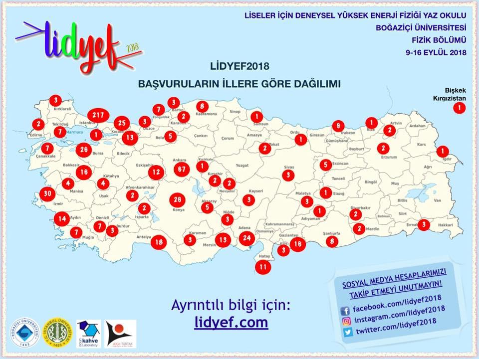 Boğaziçi Üniversitesi Fizik Bölümü öğretim üyelerinden Prof. Dr. Erkcan Özcan’ın verdiği “Modern Fizik ve Kozmik Parçacıklar” başlıklı dersle başlayan Liseliler için Deneysel Yüksek Enerji Fiziği Yaz Okulu’nda Türkiye’nin dört bir yanından gelen öğrenciler verilen derslerin yanı sıra Boğaziçi Üniversitesi laboratuvarlarında hocalarıyla beraber deneyler yapma fırsatı da buluyor. 700 başvuru arasından seçilen 24’ü 11. sınıf, 6’sı 12. sınıf öğrencisi 30 öğrenci Şırnak’tan Aydın’a Türkiye’nin farklı yerlerinden gelerek Boğaziçi’nde Prof. Dr. Metin Arık, Prof. Dr. Erkcan Özcan, Prof. Dr. Serkant Çetin olmak üzere alanlarında yetkin isimlerden dersler alıyor; tecrübeli uzmanlarla bire bir iletişim kurma imkânı buluyor. Seçilen öğrencilerin geldikleri illerin dağılımı ise şöyle sıralanıyor; Adana, Ankara(2), Antalya(2), Aydın, Balıkesir, Bolu, Bursa, Elazığ, Eskişehir, Gaziantep(2), İstanbul(5), İzmir(2), Kayseri, Kocaeli(2), Konya(2),