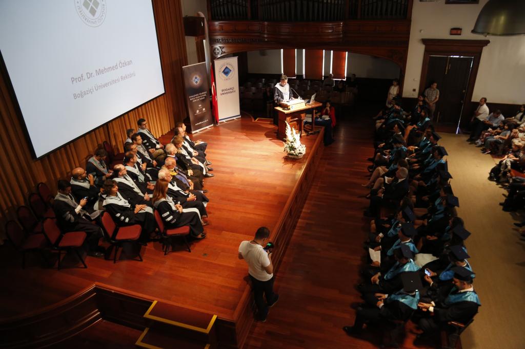 Boğaziçi Üniversitesi Rektörü Prof. Dr. Mehmed Özkan da mezunlara yönelik konuşmasında günümüzde tutkulu liderliğin, takım oyununa verilen değerin giderek daha fazla önem kazandığını vurguladı. Özkan, Boğaziçi’nden mezun olan Executive MBA Yüksek Lisans Programı öğrencilerinin bundan böyle birer Boğaziçili yönetici olarak profesyonel yaşamlarında daha fazla sorumluluk üstlendiklerinin altını çizdi.
