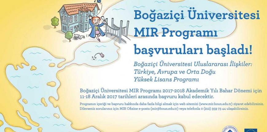 MIR Programı başvuruları 11-18 Aralık 2017 tarihleri arasında üniversitemizin online başvuru sistemi üzerinden yapılabilir. http://adaylar.boun.edu.tr/