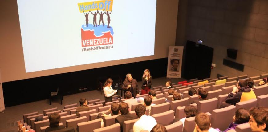 Başkonsolos Tatiana Lucia Zapata Bracho’nun öğrencilerle buluşması öncesinde Kolombiyalı gazeteci ve belgeselci Hernando Calvo Ospina tarafından çekilen ve günümüz Venezuelası'ndan siyasi ve toplumsal kesitler sunan ''Venezuela: Karanlık Oda'' adlı belgeselin gösterimi SineBU'da gerçekleştirildi.