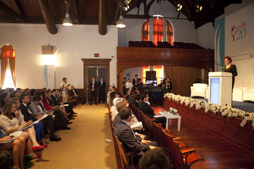 Y20 Zirvesi’nin Türkiye organizasyonunu gerçekleştiren YCDC Başkanı Emre Cenker’in ‘’Hoşgeldiniz’’ konuşmasının ardından söz alan Dışişleri Bakanlığı Müsteşar Yardımcısı ve aynı zamanda Türkiye’nin G20 Elçisi (Sherpa) Ayşe Sinirlioğlu ise Boğaziçi Üniversitesi Rektörü Gülay Barbarosoğlu’na Y20 zirvesine katkılarından ötürü teşekkür etti.