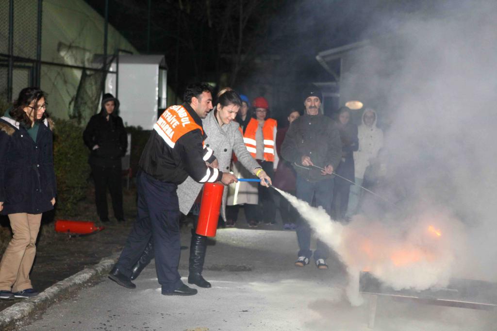 Tatbikat kapsamında sürveyanlardan oluşan sekiz kişilik ekip dış ortamda oluşturulan yangına, itfaiye ekipleri nezaretinde, müdahale etti. Ardından binada bulunanların tahliyesi gerçekleştirildi. Tahliye edilen kişilerin ise sedyeyle ambulansa taşınması sağlandı.