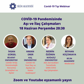 Webinar’a Prof. Dr. Nesrin Özören’in yanı sıra, Bilim Akademisi üyeleri Prof. Dr. İhsan Gürsel ( Bilkent Üniversitesi) ile Prof. Dr. Hakan Orer ( Koç Üniversitesi), Bilim Akademisi yönetim kurulu üyesi Prof. Dr. Reyhan Küçükkaya’nın moderasyonu ile katılarak Covid-19 pandemisinde aşı ve ilaç çalışmalarını değerlendirdiler.